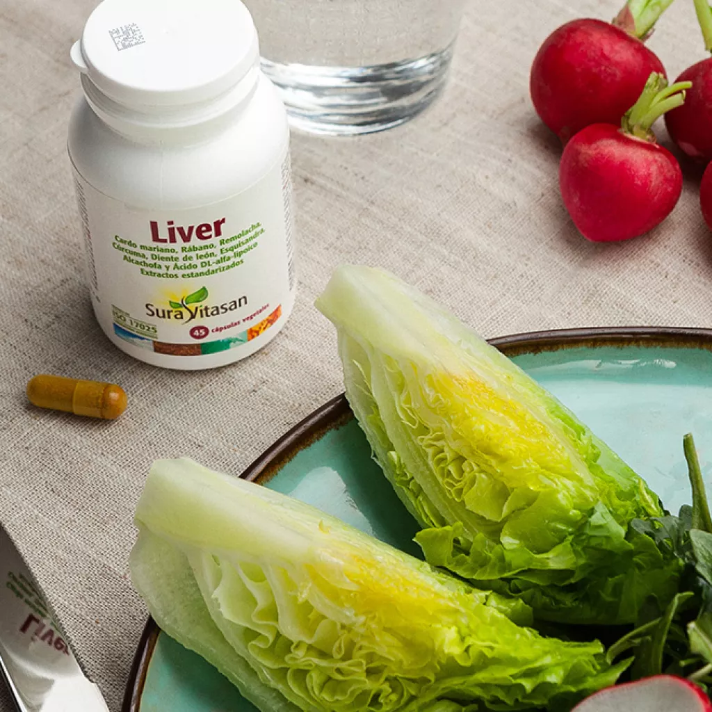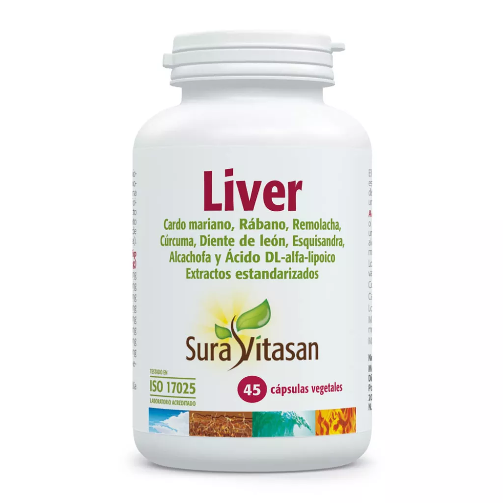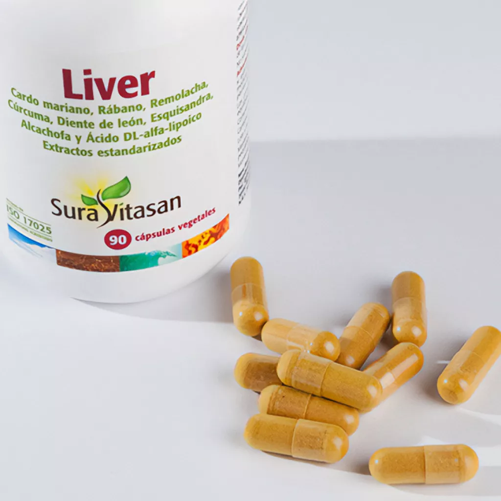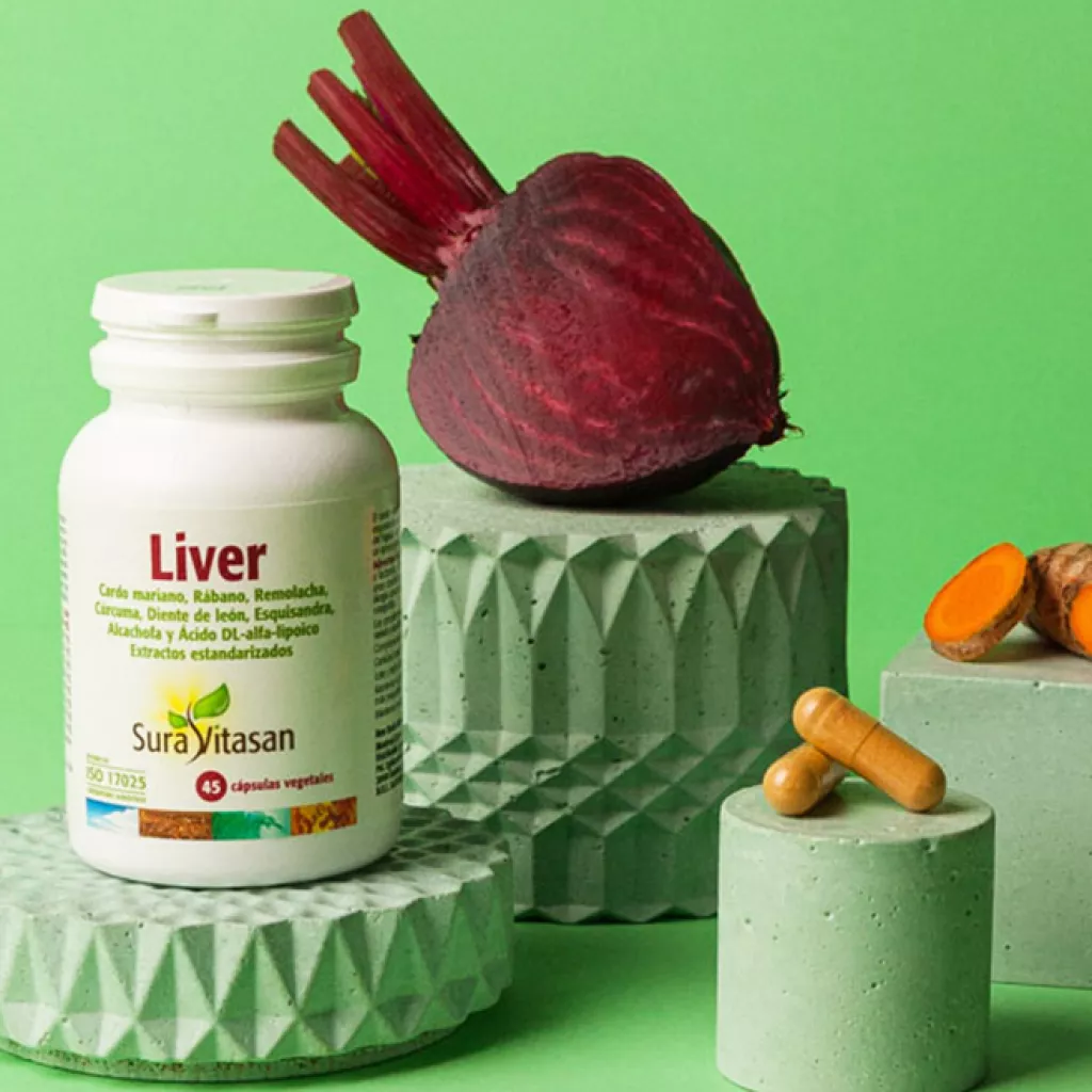 Liver es un complemento alimenticio a base de una combinación de 7 extractos de plantas de alta calidad como son el Cardo mariano (80% silimarina), raíz de Remolacha, Rábano negro, Cúrcuma (95%curcuminoides), Diente de león (3% flavonoides), Alcachofa hojas (5% cinarina), Esquisandra (9% esquisandrinas) y ácido lipoico.